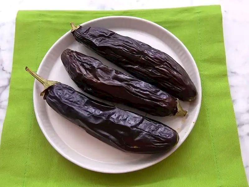 After peeling the roasted eggplants, you can cut them into cubes or serve them with yogurt.