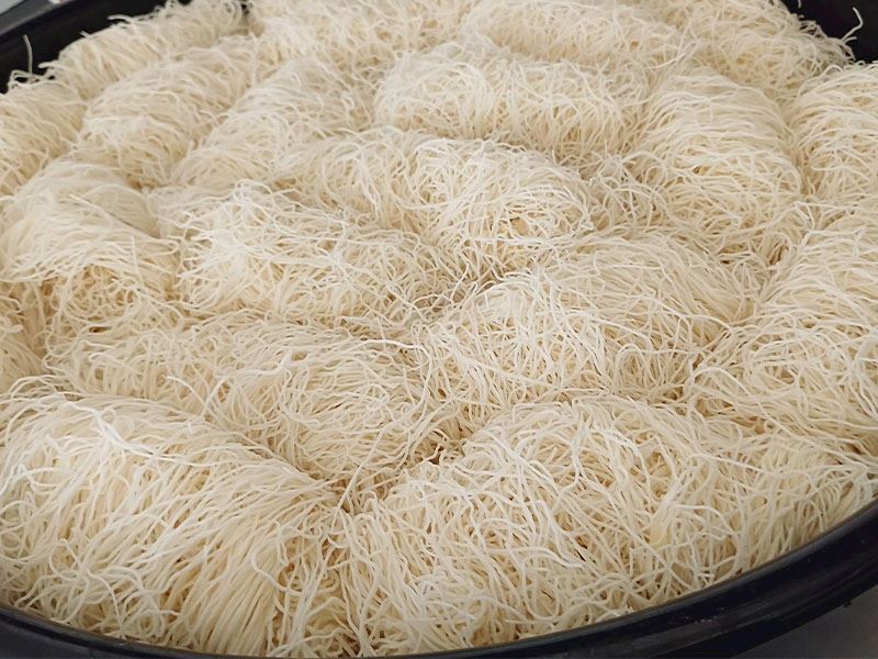 Kadayıfı öncelikle tel tel ayırarak bir kaba alın. 300 gram kadayıf için yeterli büyüklükte bir kaba ihtiyacınız olacak. Kadayıfın topaklanmaması için ellerinizle hafifçe parçalayın. Bu aşama, şekerin eşit şekilde dağılmasını sağlar.