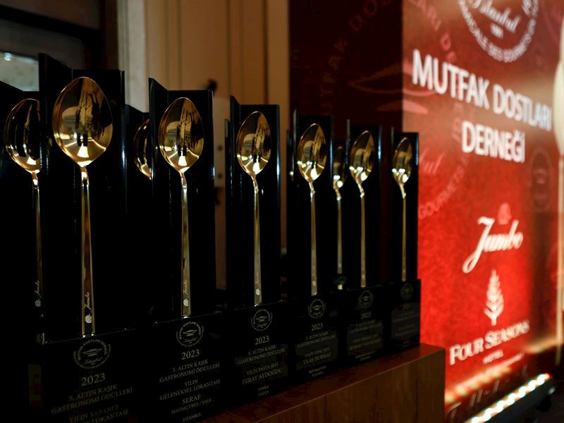 Four Seasons Sultanahmet ev sahipliğinde, Jumbo’nun katkılarıyla 17 Ocak 2024’te gerçekleşen 5. Altın Kaşık Gastronomi Ödülleri gecesinde on üç kategorideki ödüllerin kazananları açıklandı. Ödül gecesi; Türk gastronomi dünyasının önde gelen isimleri, basın mensupları ve kanaat önderlerinin de aralarında bulunduğu davetlilerin katılımı ile gerçekleşti.