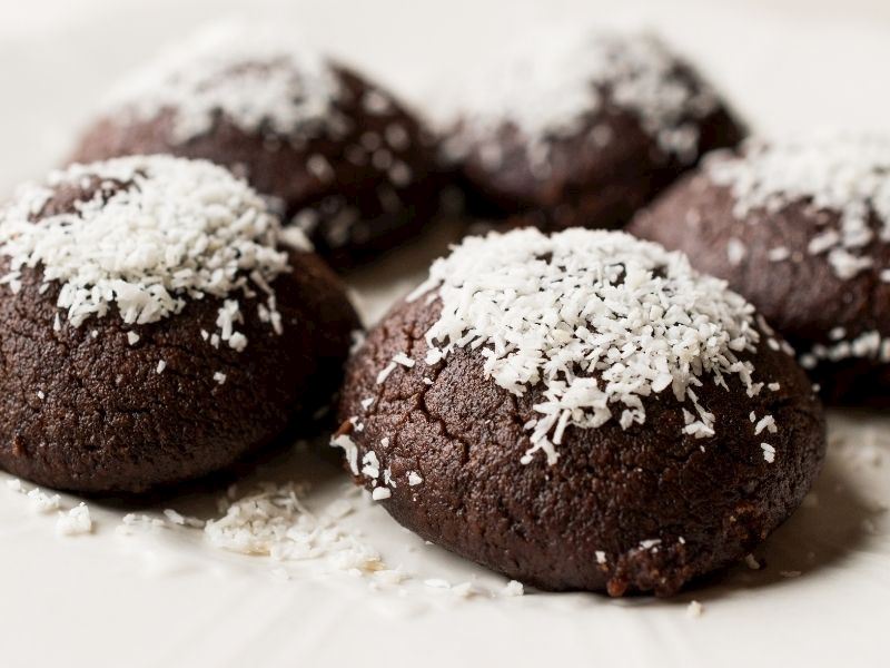 Hamuru yoğurun, yuvarlayın, 180 derece’de pişirin. Ilık kurabiyeleri soğuk şerbete batırın. Üzerine Hindistan cevizi serpin, servis edin.