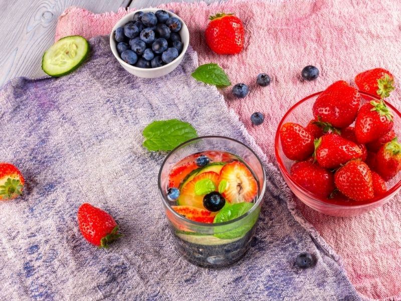 - Çilekli naneli detoks suyu: Büyük bir sürahinin içerisine su doldurun. İçine 5-6 adet çilek ve taze nane yaprağı ekleyip karıştırın.