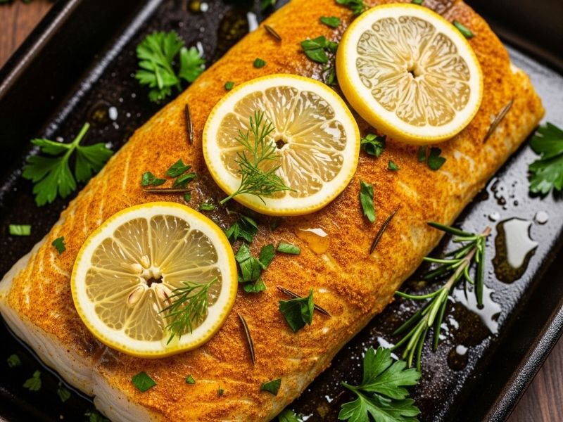 - Fırında: Zerdeçallı marine edilmiş balık, fırında 180–200°C’de 15–20 dakika pişirilebilir.