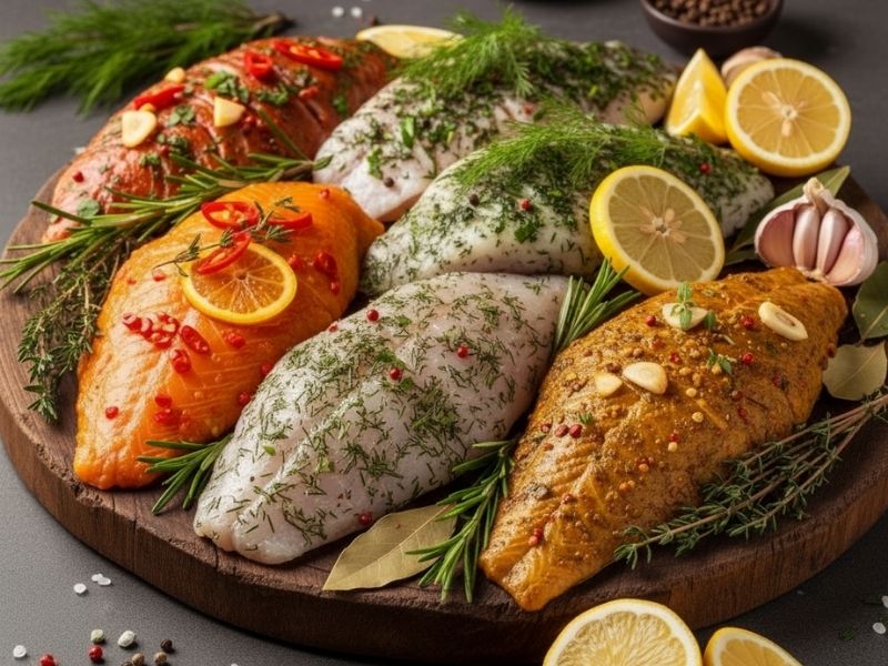 Balığın tadını zenginleştirmenin en etkili yollarından biri marinasyon veya terbiye kullanmaktır. Marineler, balığın hem aromasını artırır hem de dokusunu yumuşatır.