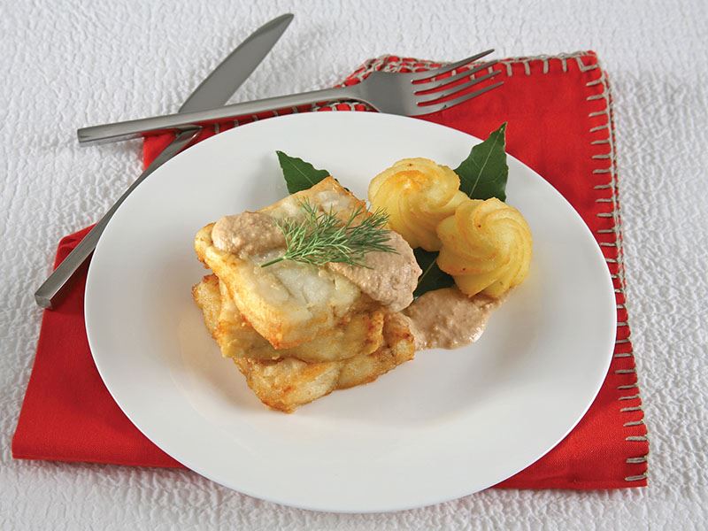 Yapılışı: Tarator sos için, bayat ekmek içi, ceviz içi, soyulmuş sarımsaklar, limonun suyu, su ve tuzu mutfak robotunda ezerek püre haline getirin. Alaska Mezgitleri una bulayıp kızgın ayçiçek yağında kızartın. Servis tabağına alıp yanında tarator sosla birlikte servis yapın.