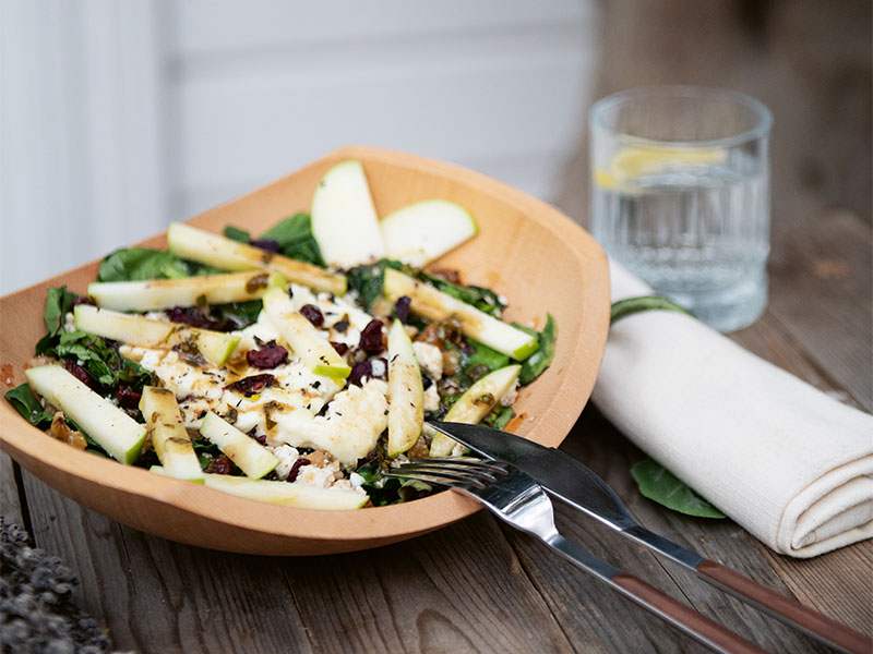 Yeşil elma, keçi peyniri ve ıspanak ile hazırlanan nefis bir salata tarifi..
