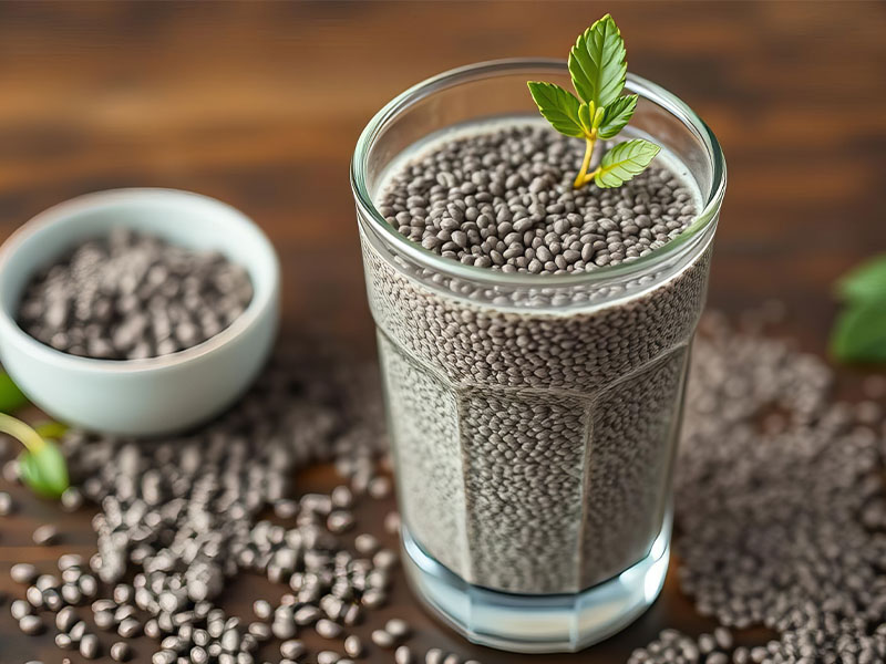 Su, limon suyu ve biraz balın içine chia tohumu ekleyin. Birkaç dakika bekleyin; hafif jelimsi bir içecek olur.