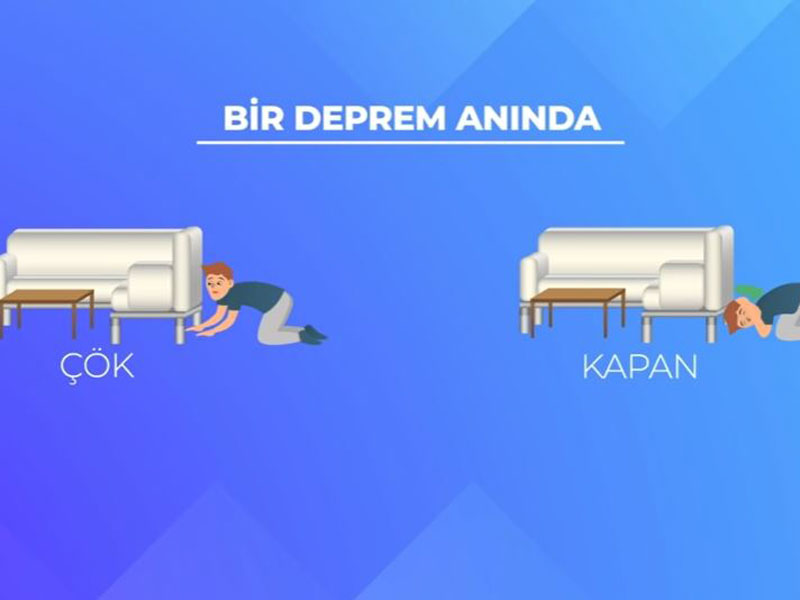2. ADIM KAPAN: Sırtınız pencerelere dönük olacak şekilde kapanıp başınızı ve boynunuzu düşme ihtimali olan cisimlerden koruyun.