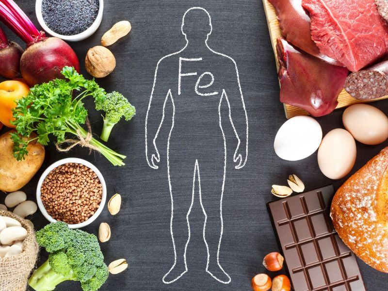 Biftek, dana eti, tavuk, kümes hayvanları, mezgit, levrek, somon gibi balıklar, istiridye, midye gibi kabuklu deniz ürünleri, pirinç, buğday, yulaf gibi tahıllar, ıspanak, lahana gibi koyu yeşil yapraklı sebzeler, kuru üzüm, kuru kayısı, mercimek ve fasulye en çok demir içeren besinler arasında yer alır.