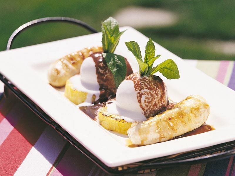 Hem sağlıklı, hem de lezzetli bir tatlı hazırlamak isteyenler için önerimiz mangalda meyve şenliği. Ananas ve muzun mangalda kızartılmasıyla hazırlanan bu tatlıyı, sos ve dondurma ile zenginleştirebilirsiniz.