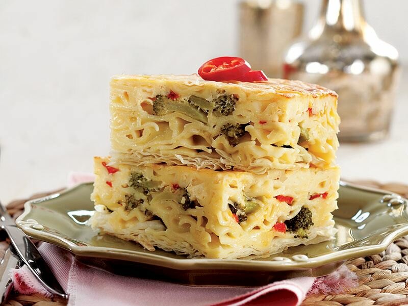 Rigatoni makarna, kıymalı harç ve kaşar peyniri ile hazırlanan makarna pastası, şık sunumu ve lezzetiyle hem göze, hem de damağa hitap etmektedir. İsteğe göre farklı soslarla zenginleştirilebilir.