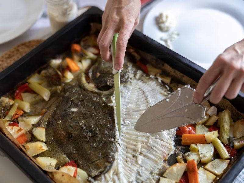 - Sebzelerle dengeli pişirme: Balığı sebzelerin üstüne yerleştirmek veya sebzeleri balığın etrafına serpiştirmek, hem görsel hem de pişirme açısından dengeli bir sonuç verir.