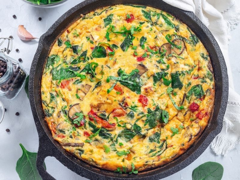 - Sebzeleri ön pişirin: Kabak, mantar, ıspanak, biber gibi sebzeler yüksek oranda su içerir. Bunları frittata karışımına eklemeden önce hafifçe soteleyin veya suyunu salmasını önleyecek şekilde hazırlayın.