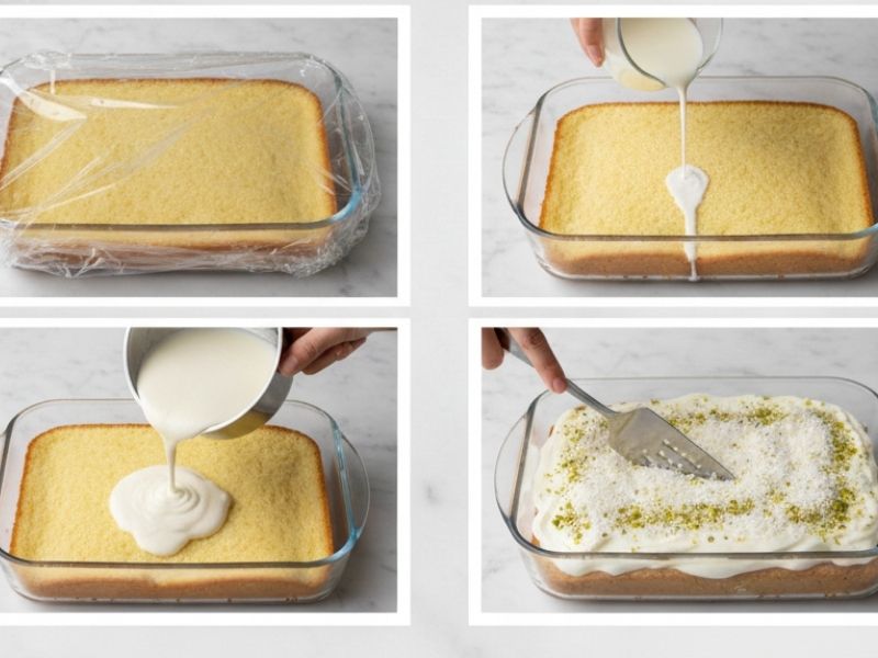 - Kek ve Muhallebi Hazırlığı: Kekin tamamen soğuması gerekir. Sıcak kekin üzerine muhallebi dökmek, kremanın erimesine ve pastanın akışkan olmasına yol açabilir.