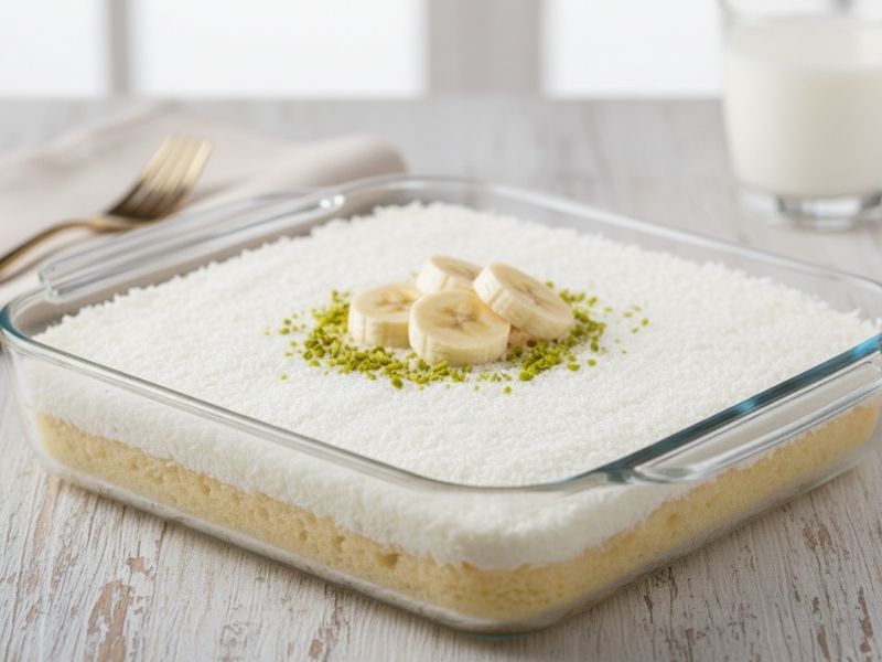 - Katman Yerleşimi: Muzlar, muhallebiyi dökmeden önce kekin üzerine ince dilimler hâlinde yerleştirilebilir veya muhallebi katmanı içine serpiştirilebilir. Muz dilimlerinin kararmasını önlemek için limon suyu ile hafifçe ovmak faydalı olacaktır.