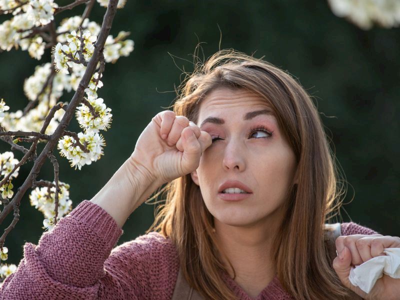Genelde vücutta alerjik durumların varlığında olan bu durum gözlerde de olabilir ve tüm vücutta alerjik semptomlar olarak başlayabilir. Gözde sulanma, kızarıklık, kaşıntı ile başlayıp sonrasında çapaklanma eklenebilir. Bazı durumlarda vücutta kırgınlık ile başlayıp gözlerde sulanma ve ağrı sonradan eklenebilmektedir. Gribal veya mevsimsel olarak gözlenebilir.