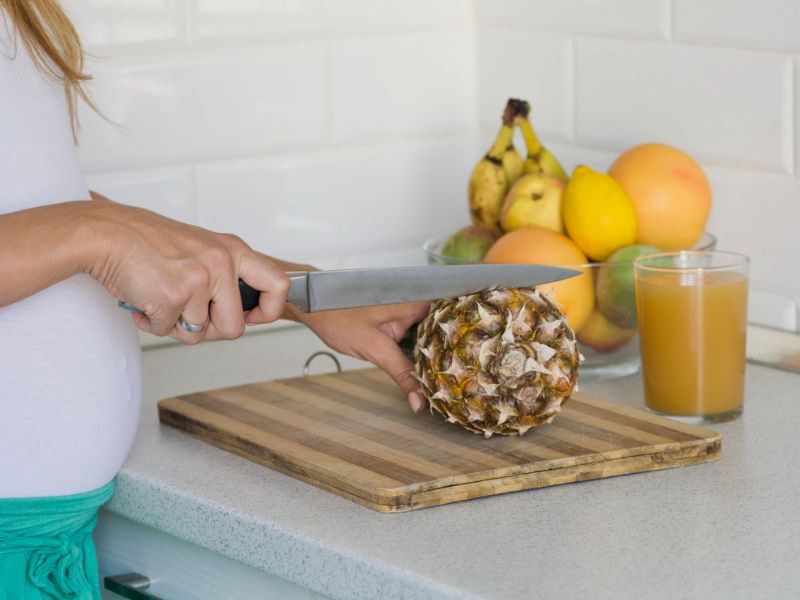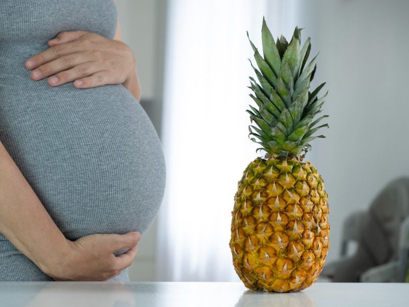 Ananas, enzim türü olan bromelain içerir. Bromelain vücut içerisinde proteinleri ve diğer besin maddelerinin daha hızlı parçalanmasına sebep olur ve aynı zaman da anormal kanamalara da yol açabilmektedir. Bu yüzden Bromelainin ilaç olarak satılan takviyelerinin gebelik süresince kullanılması önerilmez. Bromelain, ananas içerisinde yer alan bir enzim olsa da tek 1 porsiyon ananasta çok fazla miktarda bulunmadığı için gebelikte tüketilmesi sorun oluşturmayacaktır.