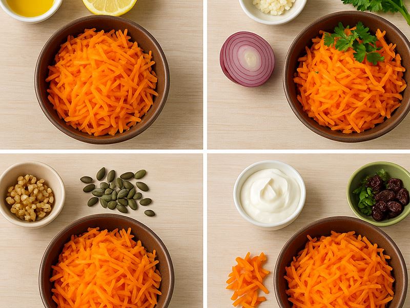 - Kuru üzüm, doğranmış kuru kayısı: Havuçla doğal bir uyum yakalar.