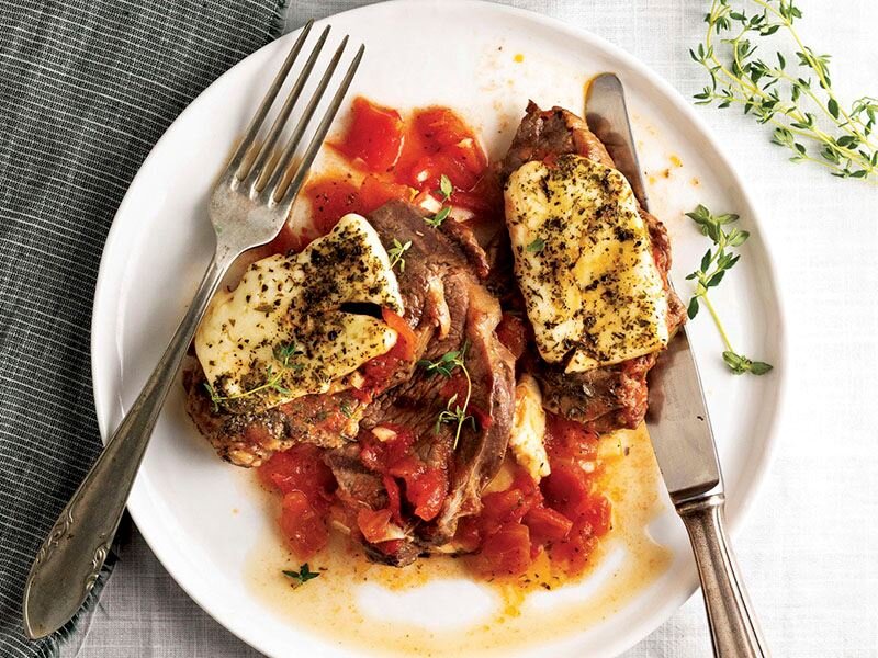 Hellim, bonfile ve domates ile hazırlanan bu yemek, özellikle davet sofralarında çok ilgi görür. Pişirildikten sonra üzeri zahterli sos ile zenginleştirilir.