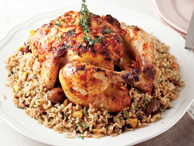 Kalabalık sofraların vazgeçilmezi olan fırında tavuk, iç pilav ile birlikte sunulur. Porsiyonu yaklaşık 210 kalori olan fırında tavuk yemeğini, fırınlanmış patates ile birlikte sunabilirsiniz.