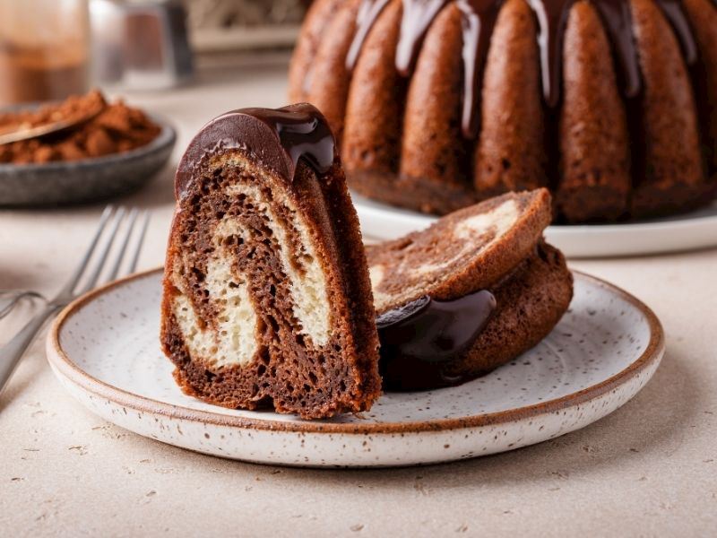 Köpük köpük olana kadar çırpılması, kekin pamuk gibi kabarması için önemlidir. Kuru malzemeleri eklerken spatula ile alttan üste doğru karıştırın; fazla çırpmak kekin sökülmesine yol açar. Kek kalıbını fırına koymadan önce fırın mutlaka önceden 170°C’ye ısıtılmalıdır. Sade ve kakaolu hamuru kalıba dökerken fazla karıştırmayın; iki renkli desen bozulur. 35–40 dakika pişirdikten sonra kürdan testi yapın; temiz çıkıyorsa kek hazırdır. Keki kalıptan çıkarmadan önce 10 dakika dinlendirin, ardından tamamen soğuması için tel ızgara üzerine alın.
