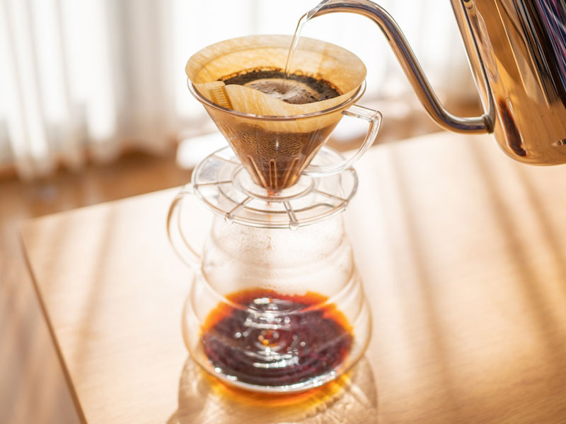 Drip kahve demleme yöntemi 1908 yılında Melitta Bentz tarafından bulunmuştur. Alman bir ev hanımı olan Melitta aşırı demlemeden kaynaklı kahve de oluşan acı tadı beğenmediği için öncelikle filtre kağıdını icat etti. Öğütülmüş kahveyi filtre kağıdının üzerine koyup sıcak su ekleyerek hem daha pürüzsüz bir kahve elde ediyor hem de kahve de oluşacak olan acı tadın önüne geçiyordu. Drip kahve demleme yöntemi için kullanılan kabın metaryeli değişkenlik gösterebiliyor. Paslanmaz çelik, cam, seramik altı delik olan kapların içerisinde eşit oranlarda bulunan kanallar yönünde su dökülerek kahve demleniyor. Her hangi bir basınç kullanılmamaktadır. Kullanılan su 92-96 derece aralığında olmalıdır. Öncelikle filtre kağıdı ıslatılarak kokusu giderilmeli ardından 250 gr su için 17 gr kahve kullanarak kahveyi demlemek gerekmektedir. Sonucunda filtre kahve elde edilir. Bu yöntem pour over ya da V60 adıyla da bilinmektedir. Aromalar bazından daha berrak ve aromatik kahve elde edildiği için günümüzde kullanılan popüler bir yöntemdir.
