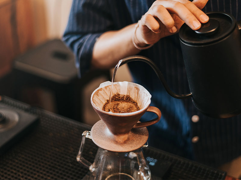 - Pour-over (V60), Chemex ya da klasik filtre makinesi fark etmez, suyu dairesel hareketlerle ve yavaşça dökmek önemli.
