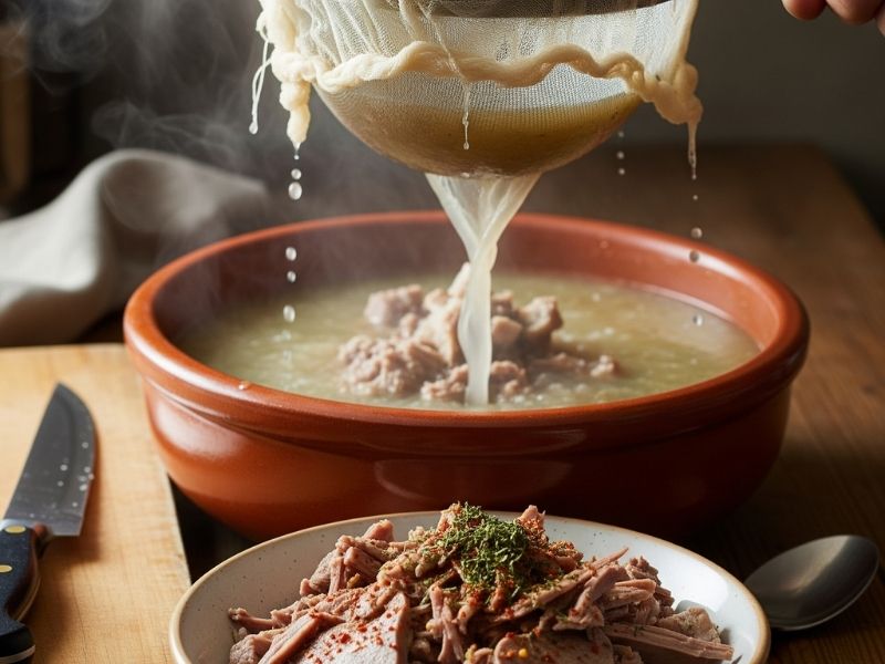 - Süzme işlemi ile çorbanın suyu berrak hale getirilir.