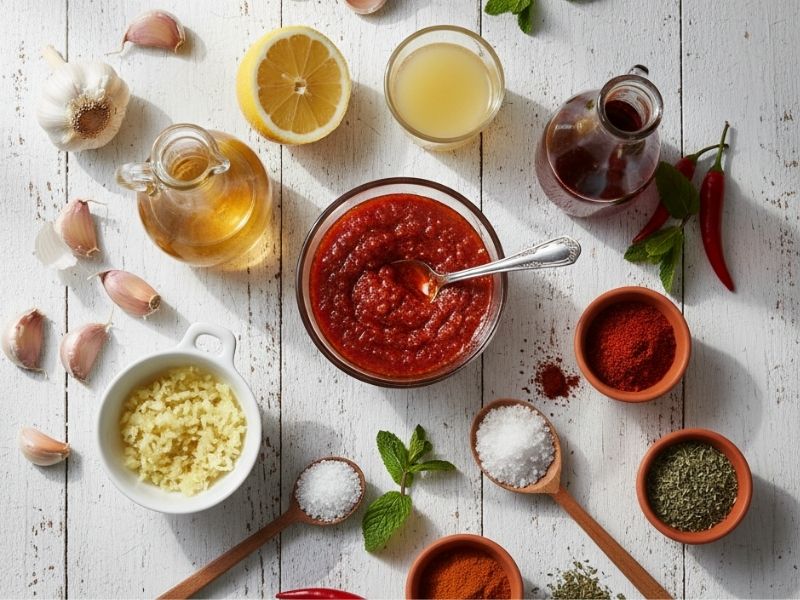 - Kırmızı toz biber ½ çay kaşığı (isteğe bağlı): Sosun rengini ve aromasını güçlendirir.