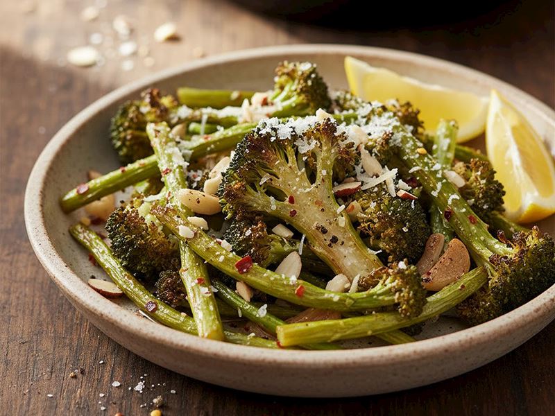 Kızarmış brokoliyi sıcak servis edin. Üzerine birkaç damla taze limon suyu sıkarak lezzetini artırabilirsiniz. Rendelenmiş parmesan peyniri veya kaşar ekleyerek farklı bir tat yaratabilirsiniz. İsteğe bağlı olarak çiğ badem veya fındık parçalarıyla servis etmek de oldukça hoş bir dokunuş olur.
