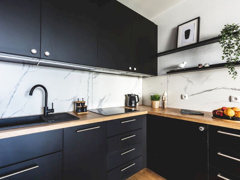 Tezgahın parlak bir yüzeye sahip olması, yanılsamaları kırar ve daha şık bir görünüm sunar.