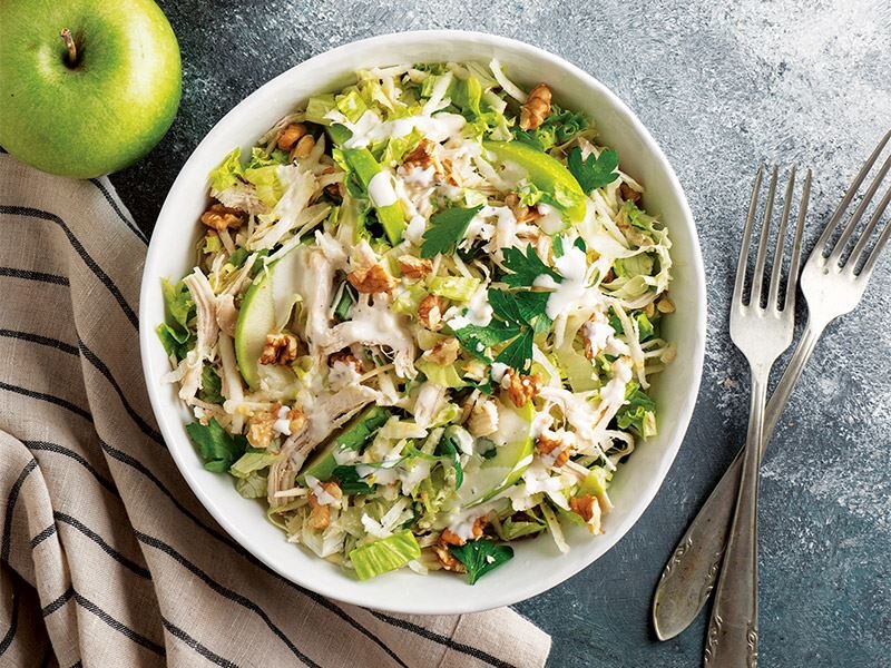 Tavuk göğsü, kereviz ve yeşil elma ile hazırlanan bu salatayı, yoğurtlu mayonezli sos eşliğinde zenginleştirebilirsiniz. Ferahlatıcı tada sahip olan bu beslyeici ve doyurucu salatayı makarna salatası ile birlikte ya da makarna salatası ile karıştırırak servis edebilirsiniz.