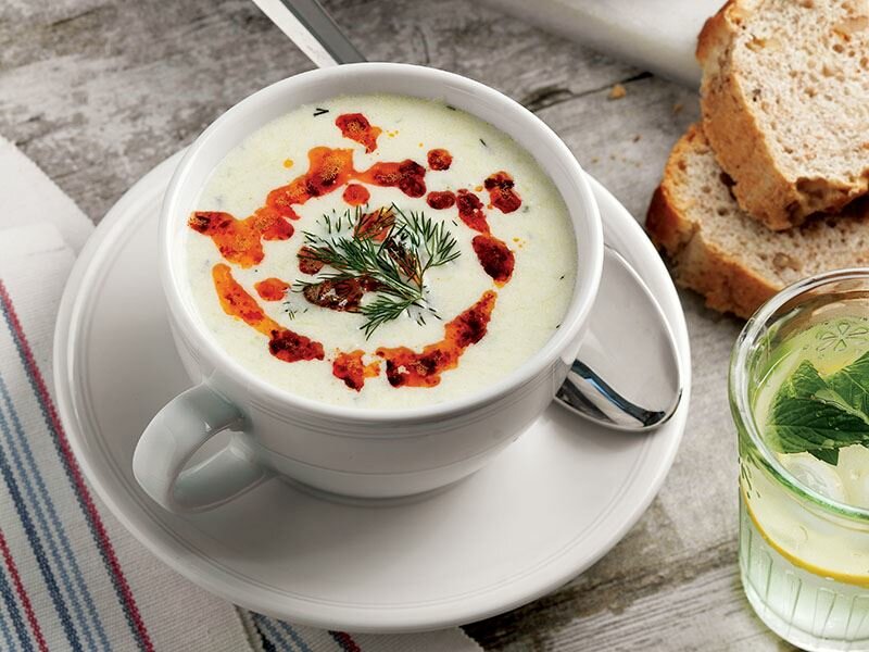 Yapılışı: Önce küçük doğranmış kabak, soğan ve sarımsakları, tam buğdayı güzelce üzerini kapatacak kadar suyla haşlayın pişirin. İnce kıyılmış dereotu, zeytinyağı, kimyon, karabiber içine ekleyerek bir taşım kaynatıp, altını kapatın. Sütlü versiyonu için kabak çorbası tarifine göz atın.