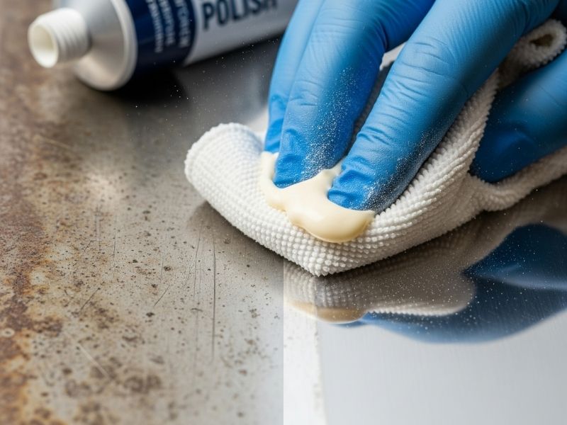 - Metal yüzeye parlaklık kazandırmak için karbonatlı su karışımı da hafifçe uygulanabilir; ancak iyice durulamak şarttır.