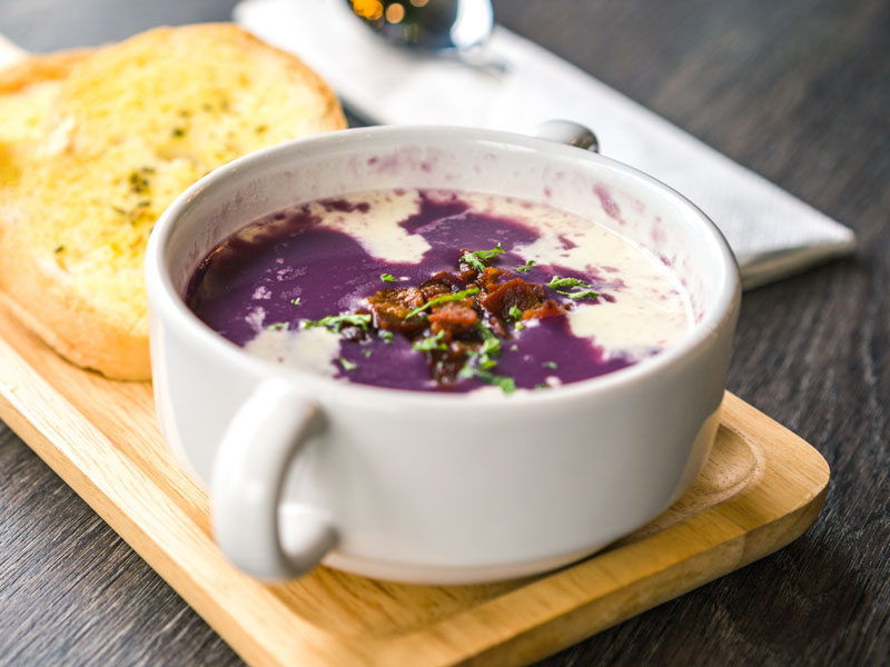 Mor patates görüntüsü ile oldukça ilgi çekicidir. Aynı zamanda besin değeri de oldukça zengindir. Tüm patateslerde olduğu gibi mor patates de potasyum başta olmak üzere çeşitli mineraller, C vitamini, karotenoid bileşikler açısından zengindir ve besleyici bir karbonhidrat kaynağıdır. Sarı/beyaz patatesle besin değerleri benzer olsa da, mor patatesi diğerlerinden ayıran en belirgin özellik yüksek düzeyde antioksidan içermesidir. Sizler için mor patates ile hazırlanan 5 tarifi derledik. İşte, birbirinden lezzetli, mor patates ile hazırlanan 5 tarif: