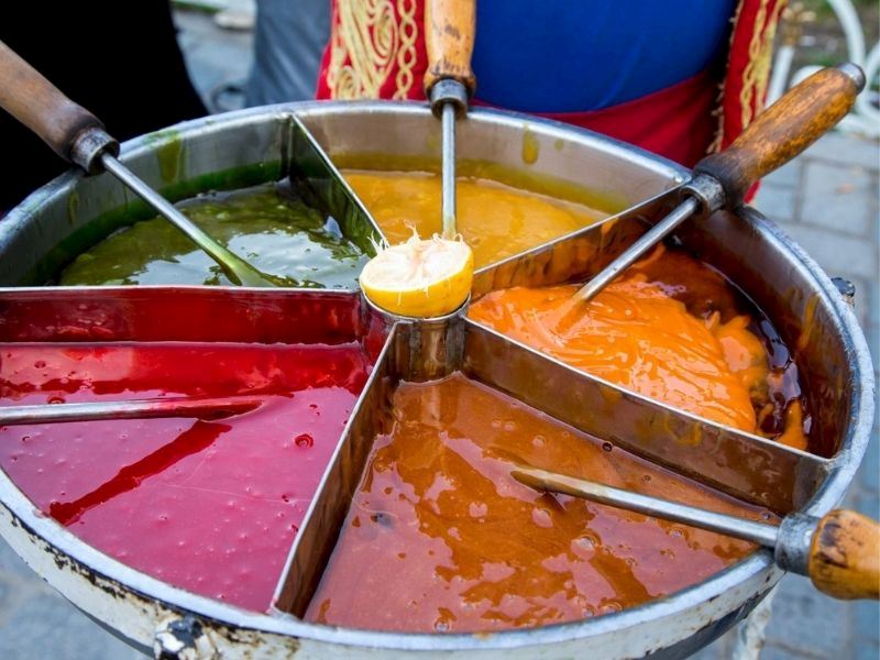 - Macunları ahşap çubuklara hızlı bir şekilde sarın. Üzerine limon sürerek servis edin.