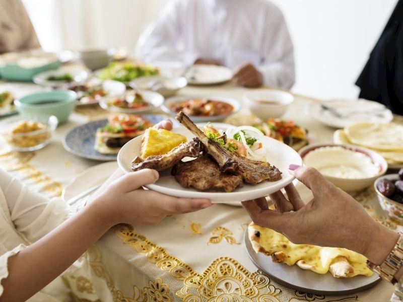 Sahurda besin değeri olarak zengin ve tok tutacak yemekler yenirdi. İftar iki aşamalı yapılırdı. İlk aşamada zemzem ve hurma ile oruç açılıp kahvaltılık olarak isimlendirdiğimiz ürünler tüketilir ikinci aşamada daha çok etli ana yemekler ve börek tüketilirdi. En sonda tatlılar gelirdi. Daha çok güllaç ve baklava tüketilirdi. Yemek sonu da genel olarak Türk kahvesi veya mevsiminde hazırlanmış şerbetler ile bitirirlerdi.