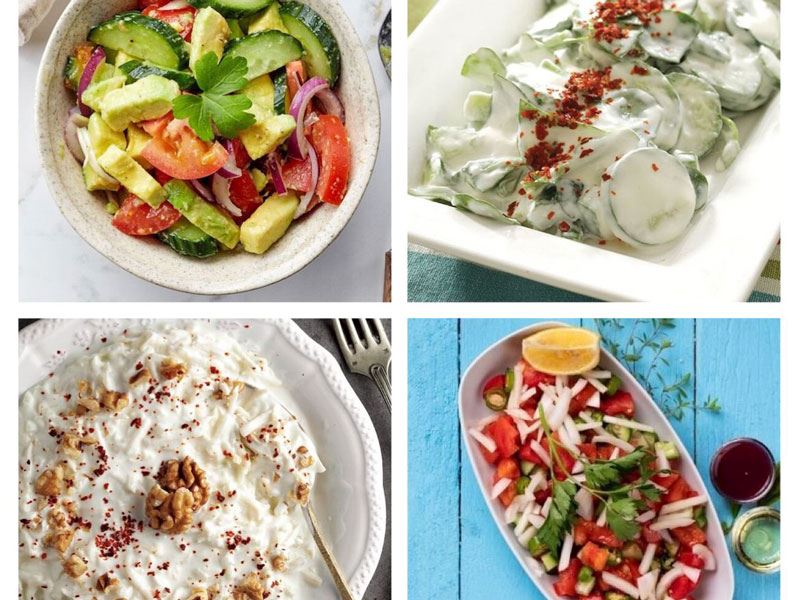 Çoban salata, salatalık, domates, biber ve soğan gibi temel malzemelerden oluşur. Özellikle pirinç pilavı ve bulgur pilavının yanına çok yakışır.