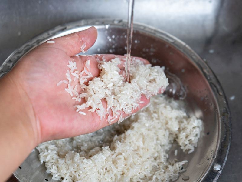 Pirinci durulamak, yumuşacık bir bitmiş ürün elde etmek istediğinizde düşünmeye değer bir uygulamadır. Bunun nedeni, ticari olarak temin edilebilen pirincin çoğunun öğütülmesi ve nişasta granüllerinin bozulmasına neden olan öğütme işleminin, pirinç yüzeyinde aşırı nişastalı kalıntı bırakmasıdır. Pirinci pişirmeden önce su temiz akana kadar durulamak, aksi takdirde kaynar suya maruz kaldıktan sonra yapışkan hale gelecek olan fazla yüzey nişastasını giderir.