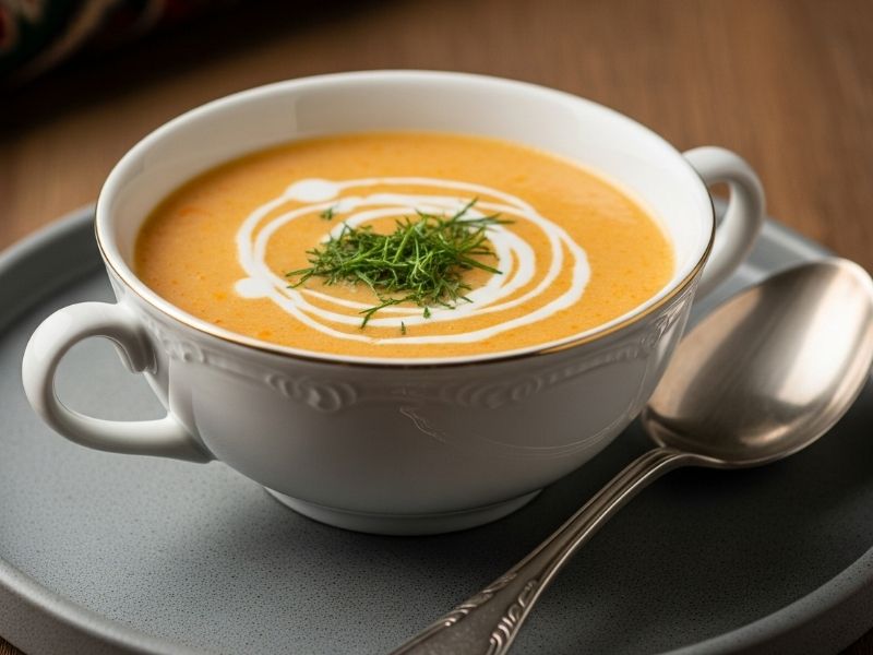 Öncelikle tereyağı tencerede eritilir ve un eklenerek kavrulur. Un hafifçe pembeleşince rendelenmiş havuç eklenir ve kısa süre sotelenir. Ardından yavaş yavaş et suyu eklenerek karıştırılır ve kaynamaya bırakılır. Çorbanın kıvamı oturduğunda tuz ayarlanır ve ocaktan almadan önce krema eklenerek pürüzsüz bir dokuda tamamlanır. Servis sırasında ince doğranmış maydanoz ve rendelenmiş kaşar peyniriyle süslenir.