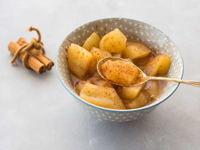 Yapılışı: Elmanın kabuklarını soyarak küp küp doğrayın. Tarçın ve tereyağı ekledikten sonra mikrodalga fırında yumuşayana kadar 2-3 dakika pişirin. Elmaları sıcak servis edin dilerseniz dondurma ile çok yakışacaktır. Afiyet olsun.