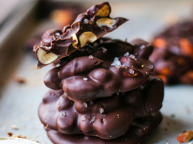 Yapılışı: Bitter çikolata benmari eritilir. Bademlerin üzerine dökülür. Tuz serpilir ve soğumaya bırakılır. Afiyet olsun.
