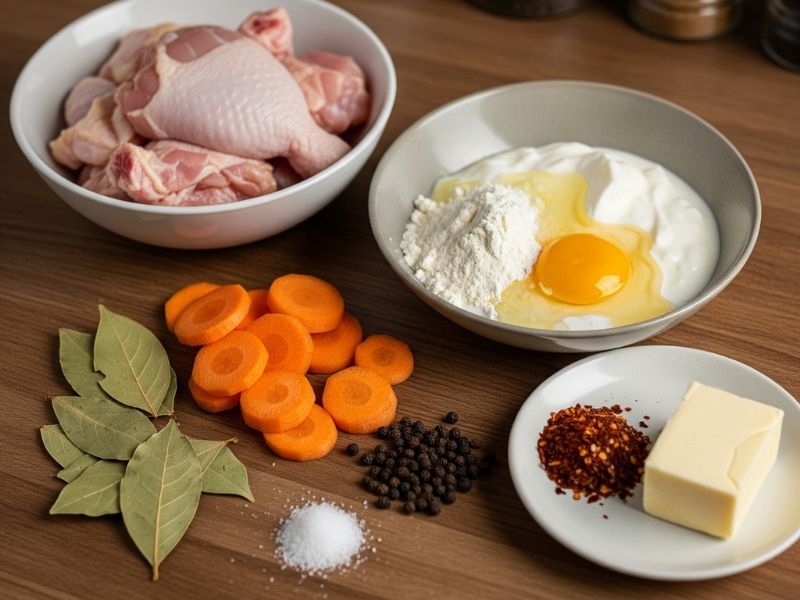 Saray çorbasının ana malzemeleri tavuk göğsü ve but, havuç, defne yaprağı, tane karabiber ve tuzdur. Tavuk, çorbaya protein açısından zengin bir değer katarken, havuç ve baharatlar lezzetini derinleştirir. Terbiyesi için kullanılan yumurta sarısı, yoğurt, limon suyu ve un ise çorbanın pürüzsüz, kremsi ve hafif ekşi bir tada sahip olmasını sağlar.
