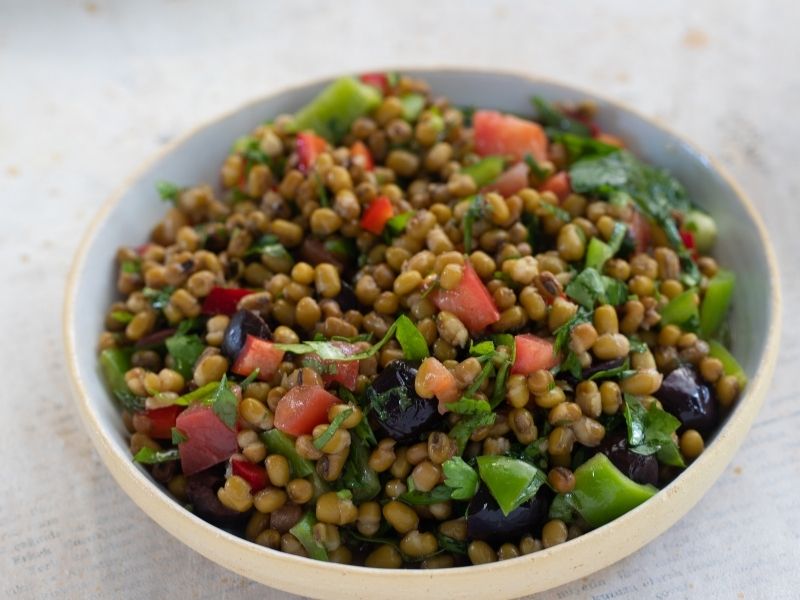 Maş fasulyesi, biber ve nar ekşisi ile hazırlanan bu piyaz, yemeklerin yanında salata olarak sunulur. Hem doyurucu, hem de hafif bir yemektir.