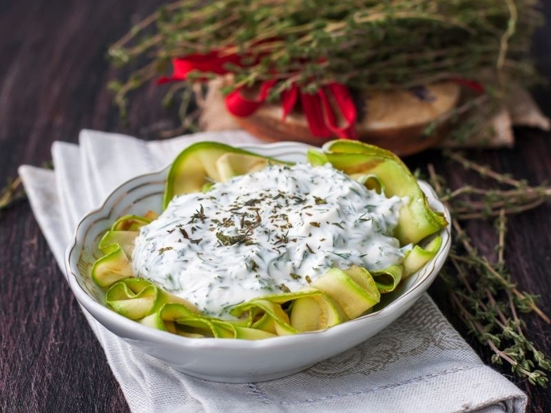 Girit kabağı, yoğurt, dereotu ve badem ile hazırlanan bu tarif, genellikle ana yemeklerle birlikte sunulur. Hafif ve düşük kalorili olduğu için, diyet listelerine de ekleyebilirsiniz.