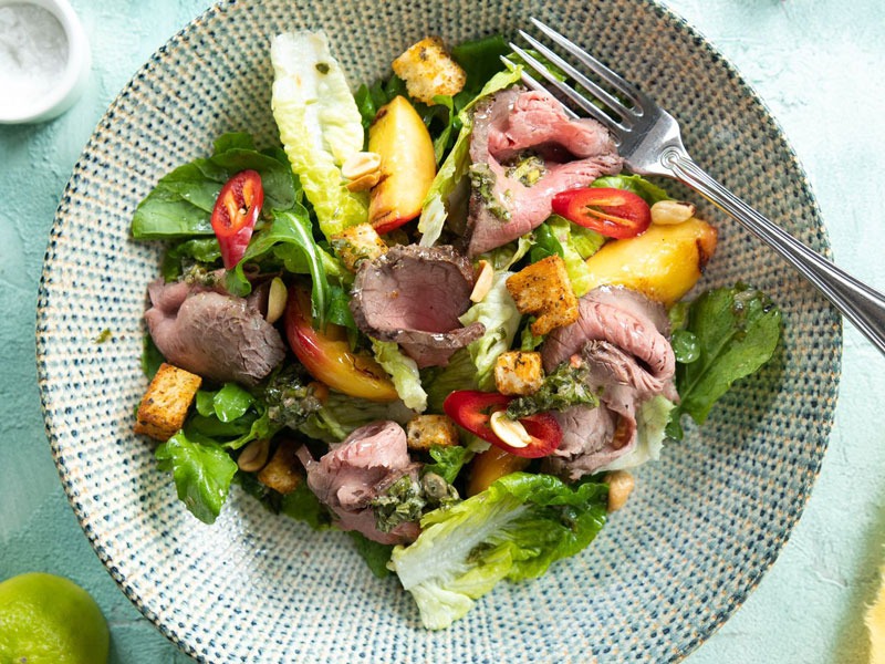 Yılbaşında eti yemeklerde değil de, daha hafif tariflerde kullanmak isteyenler için önerimiz rozbif salatası. Izgarada pişirilmiş ayva ile hazırlanan bu salata, farklı tatlar sevenler için de idealdir.
