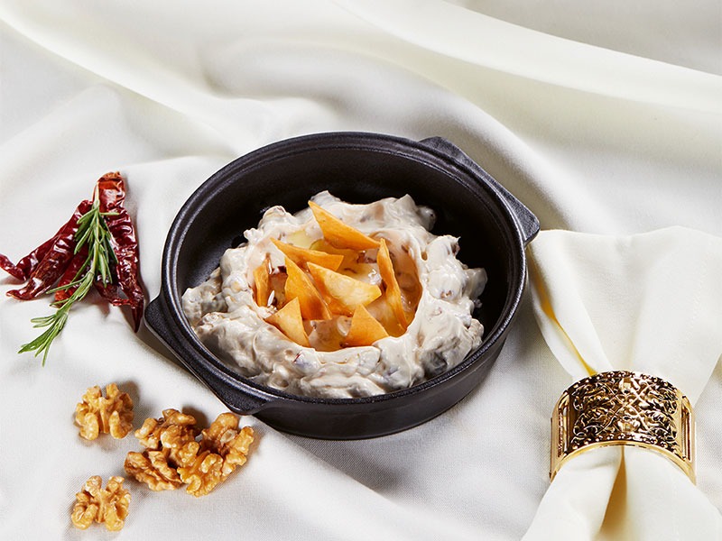 Yapılışı: Zeytinyağını bir tavaya alın ve atom biberini içinde kavurun. Haşlanmış nohutu blender’dan geçirerek püre haline getirin. Nohut püresini ve diğer tüm malzemeleri kavurduğunuz atom bibere ilave edip güzelce karıştırın ve soğumaya bırakın. Süzme yoğurda sarımsak ve tuz ekleyerek soğumaya aldığınız karışıma katın ve kızartılmış lavaş ekmeği ile servis edin.