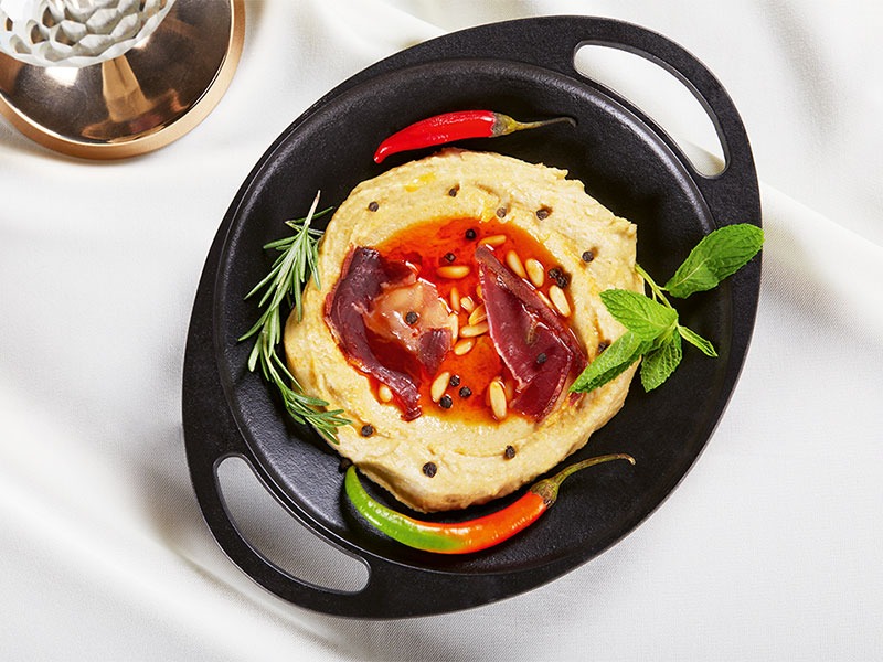 Yapılışı: Üzeri için kullanılan malzemelerin dışındaki tüm malzemeyi blender’da iyice püre haline getirdikten sonra servis tabağına alarak üzerine pastırma ve çam fıstığını ekleyin. Erittiğiniz tereyağını humusun üzerinde gezdirerek servis edin. Videolu anlatımıyla orijinal humus ve pastırmalı humus tarifine de göz atın.