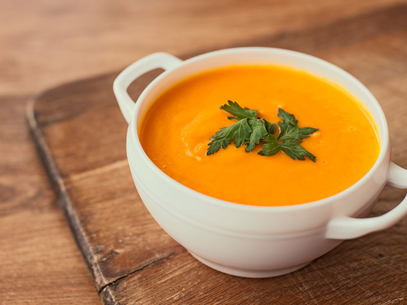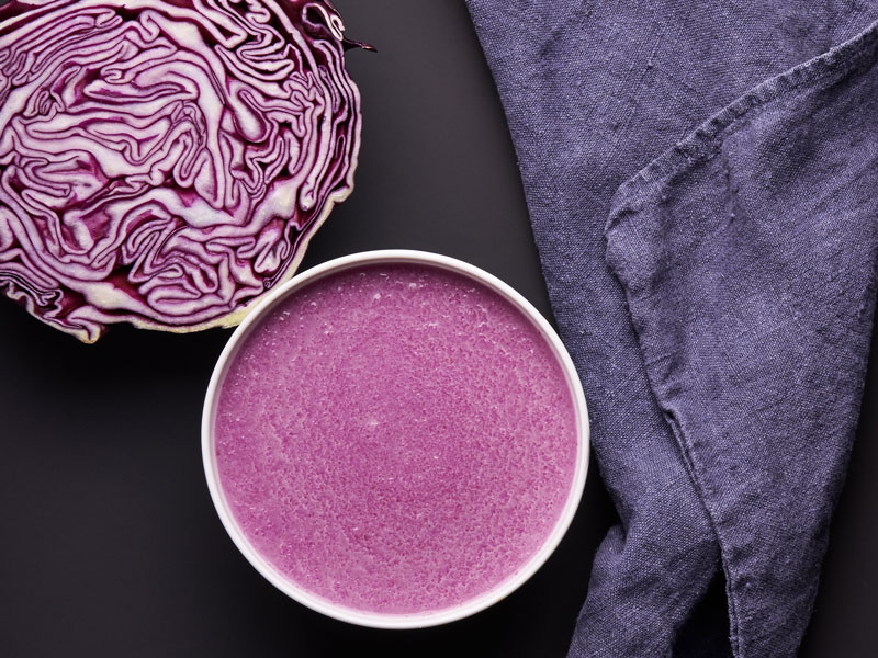 Yapılışı: Kırmızı lahanayı ince şeritler halinde kesin. Soğanı soyun ve rendeleyin. Yağı bir tavada orta ateşte ısıtın ve kırmızı lahanayı yaklaşık 5 dakika kızartın. Portakal suyunu ekleyin. Suyu ekleyerek kapağı kapalı şekilde pişirin. Blenderdan geçirin ve krema ekleyerek servis yapın.