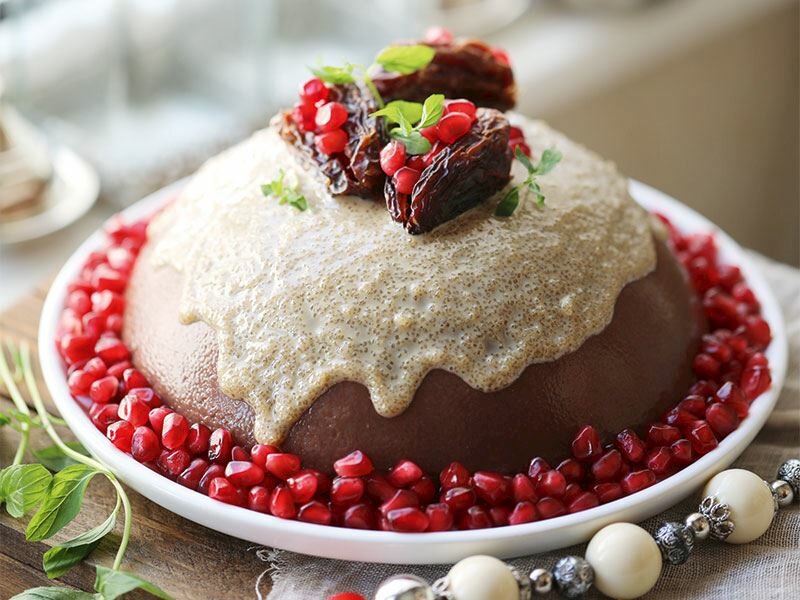 Özel günlerde kendi pastalarını hazırlamak isteyenler böyle alalım. İrmik, kakao, tahin ve hurma ile hazırlanan bu pastayı nar taneleri ile süsleyebilir, sevdiğiniz meyvelerle daha lezzetli bir hale getirebilirsiniz.