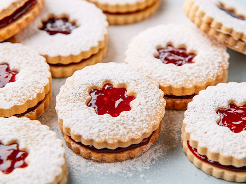 Kurabiye hamurunu yoğurun. Küçük toplar yapıp ortasını parmağınızla çukurlaştırın. 170°C’de 10-12 dk pişirin. Fırından çıkınca ortalarına reçel koyun.